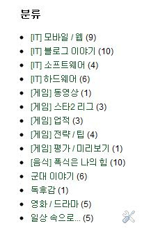 이제 사이드바에 보통의 국내 블로그 처럼 분류(카테고리) 메뉴를 보이기 할 차례입니다.